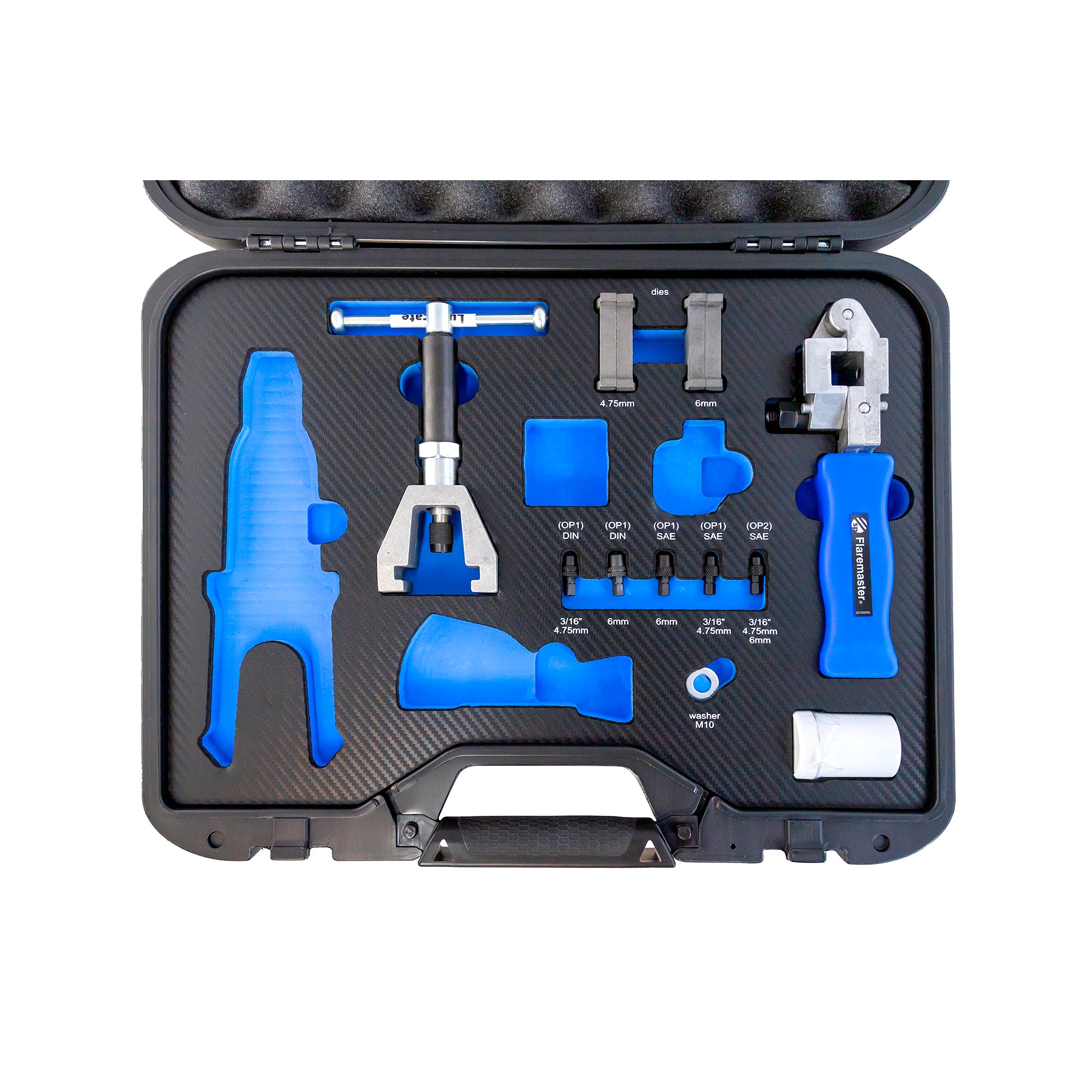 Patented Original Design – Unique, proven technology for creating high-quality, leak-free SAE and DIN single and double flares directly on the vehicle.