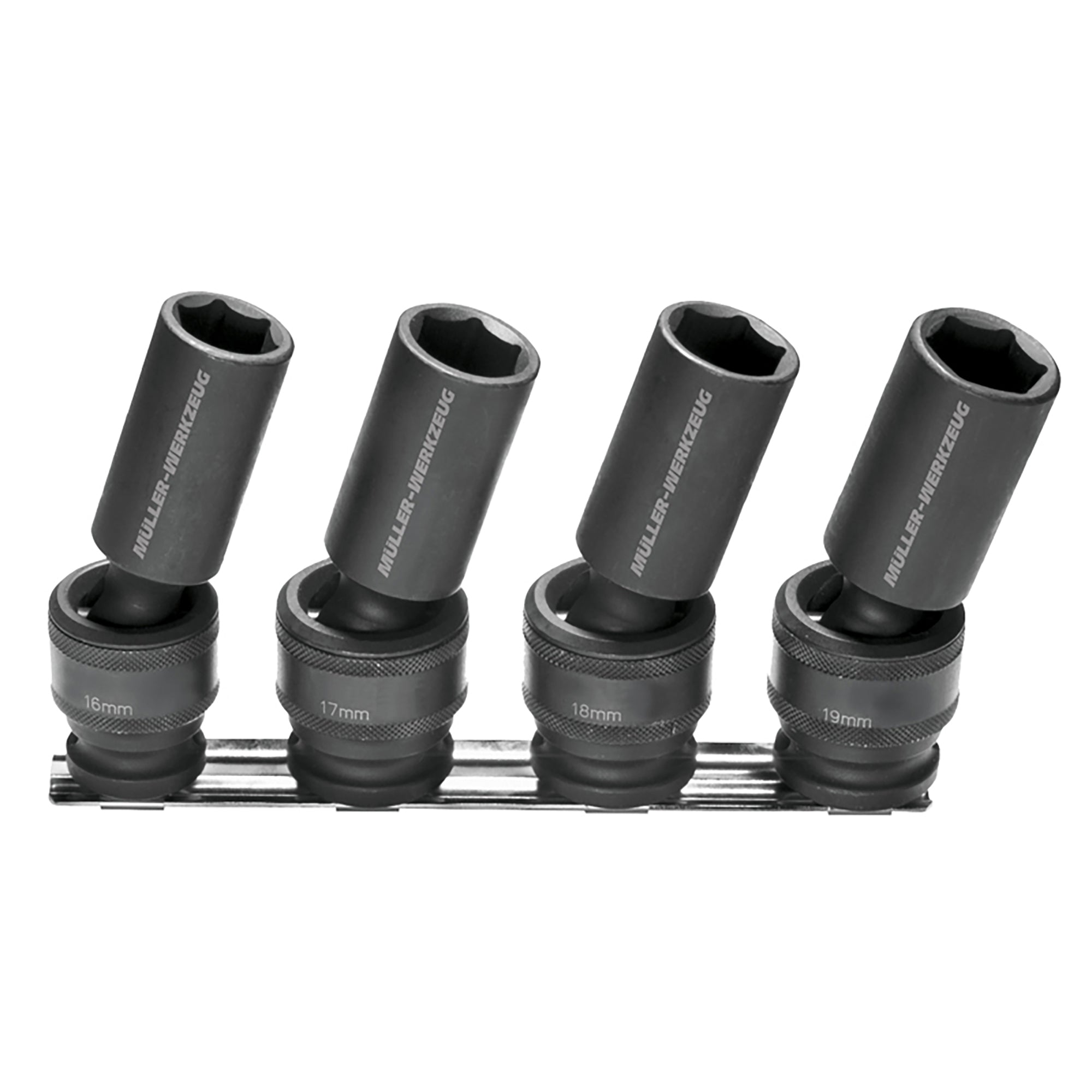 1/2" Impact Socket Set with Swivel Ball Joint with 30° swivel Sizes: 16, 17, 18 & 19mm Perfect for axle... Read more